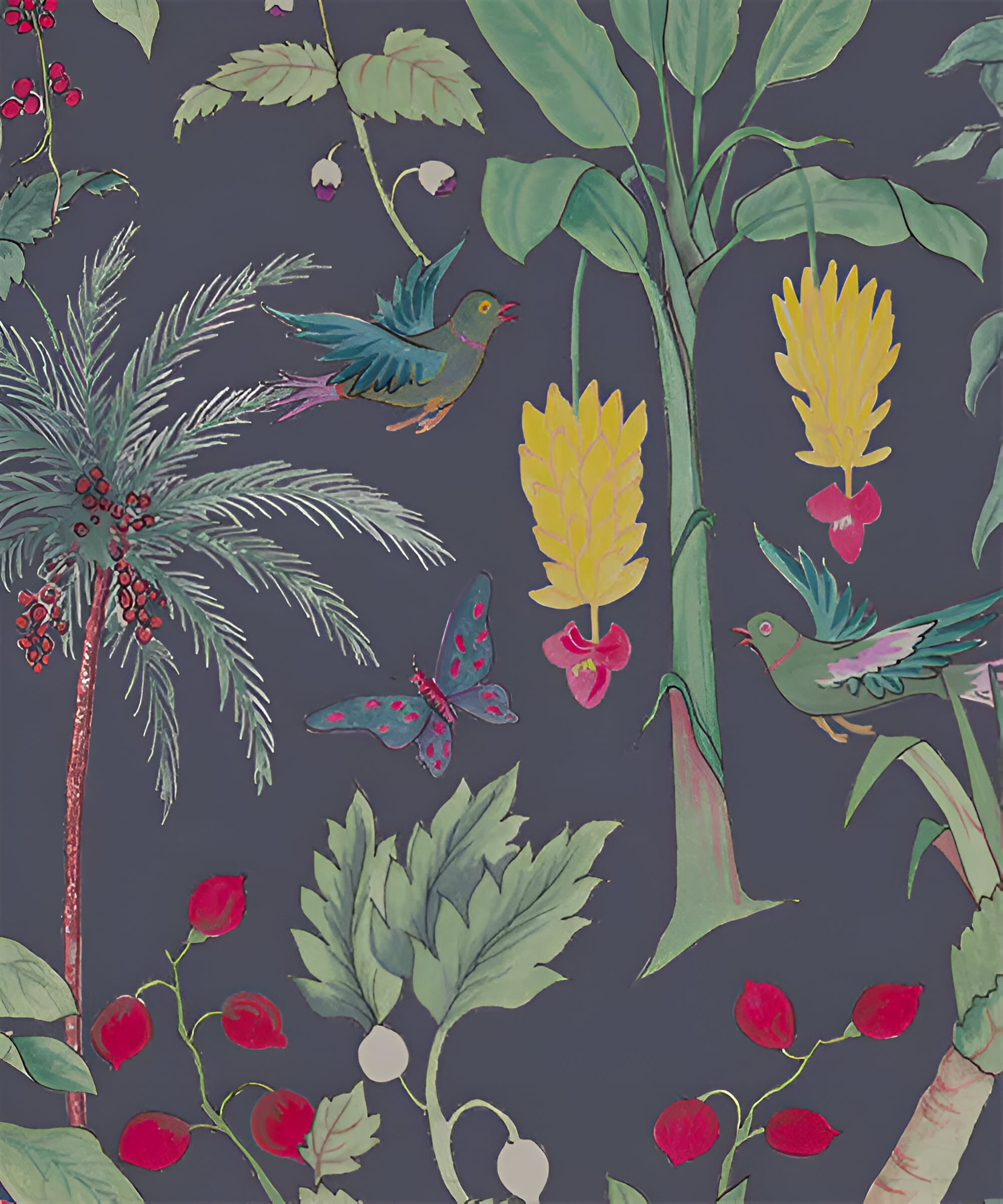 Pattern & Style: The Paradise wallpaper features rich, detailed patterns inspired by tropical flora and fauna. The vibrant colors and intricate designs create a lively and dynamic ambiance, perfect for adding a bold statement to your decor.