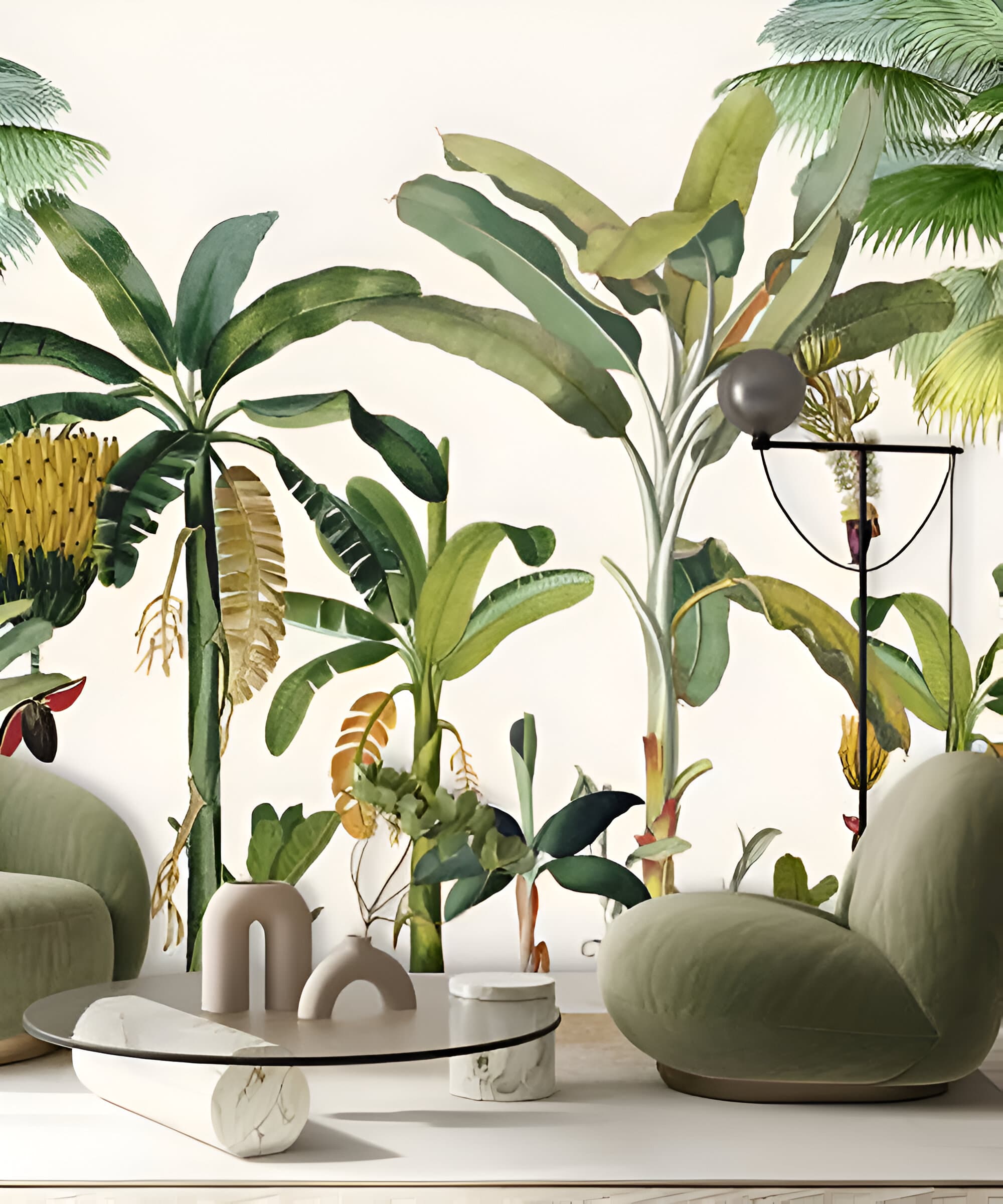 Pattern & Style: The Flamingle wallpaper presents a captivating scene of flamingos gracefully interacting within a verdant, tropical setting. The intricate details and rich colors make this design an excellent choice for adding a vibrant and nature-inspired touch to your interiors.