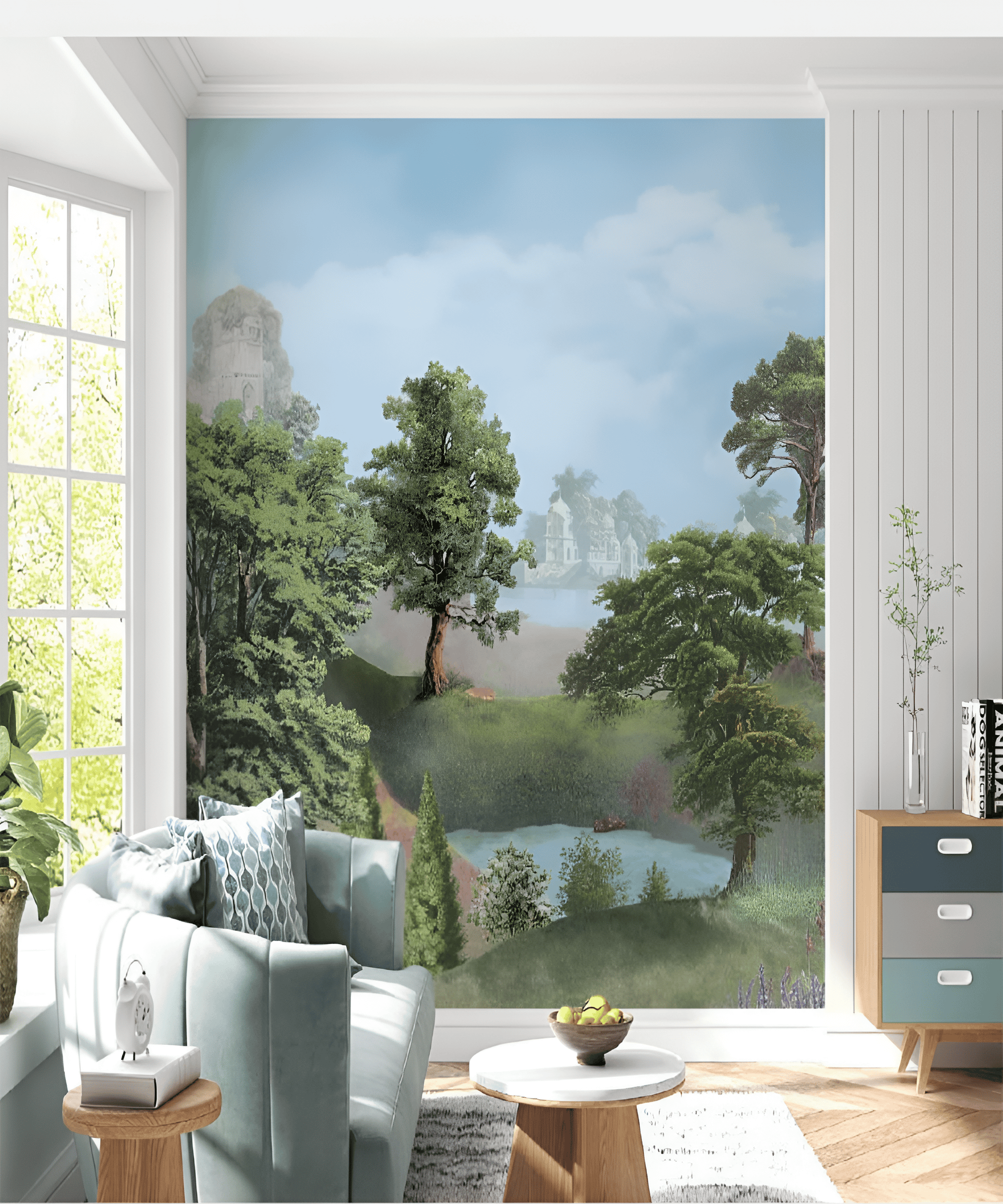 It's important to note that our wallpapers require glue-based installation with overlap matching/cutting, and the prices listed on our website do not include installation services.